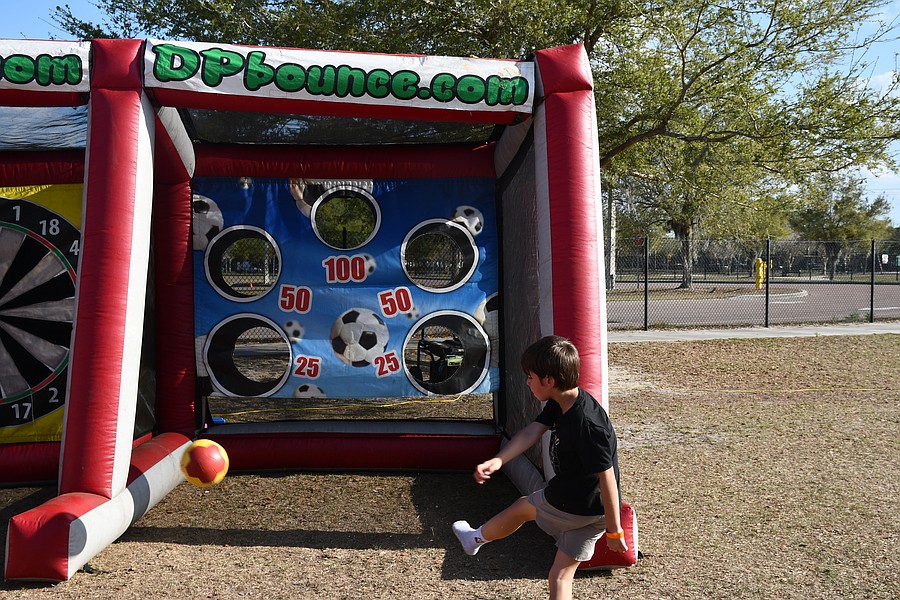 A soccer kick inflatable was one of the many games available for students to enjoy.