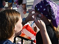 The face-painting booth was a popular stop for the children.