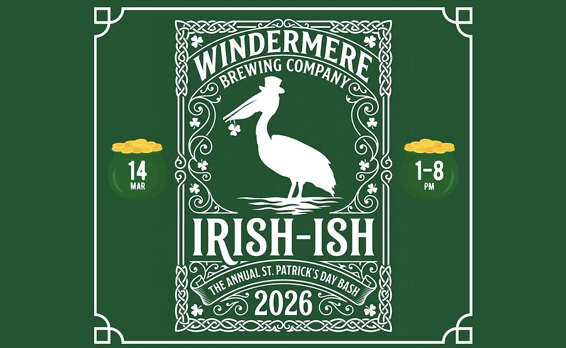 In Windermere, the "Irish-ish" St. Patrick's Day Celebration takes place from 1 to 8 p.m. Saturday, March 14, at Windermere Brewing Company, 111 W. Fifth Ave., Windermere.