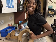 Freshman Myra Voltaire has found a new passion in set building as a student in the Ocoee High Technical Theatre Academy.