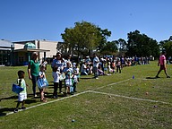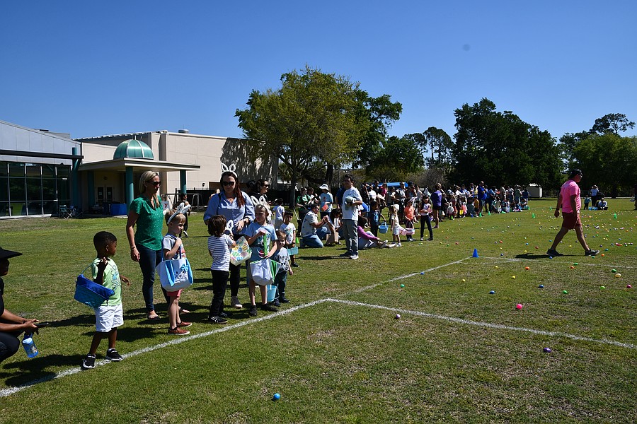 Families lined the sideline of the soccer field waiting for the egg hunt to start.