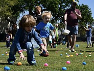 Children sprinted to the eggs with smiles on their faces.