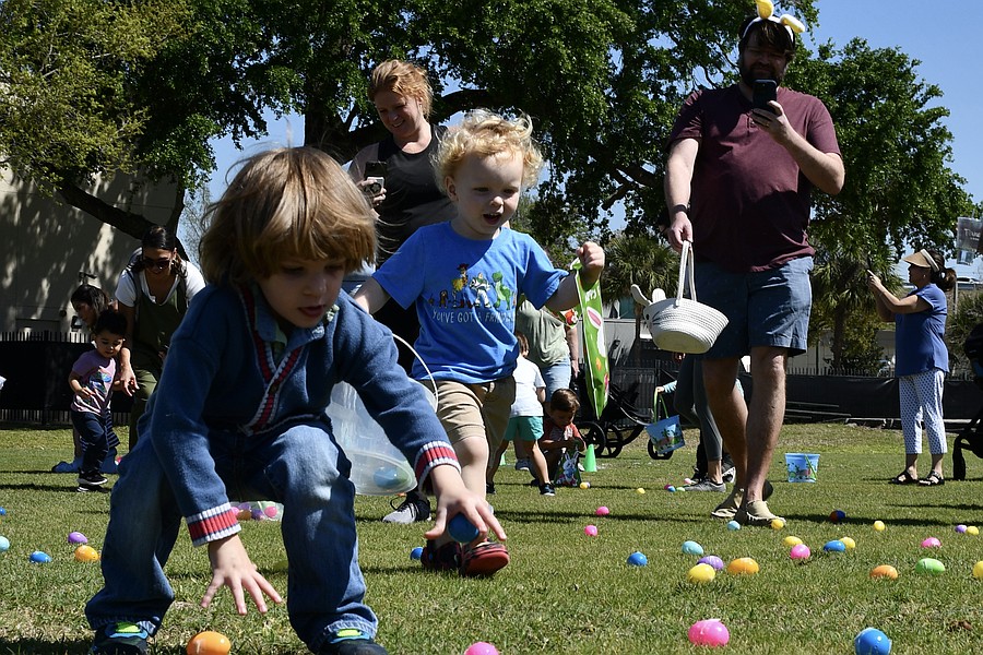 Alexandra Josey, 3-year-old Miles Josey and Nic Josey couldn't wait for the egg hunt to start.