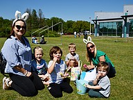 Parents helped their children during the hunt.