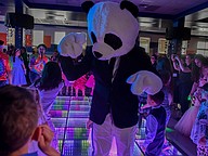 The panda was a popular addition to the dance and kids were happy to see it dancing along with them.