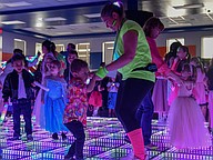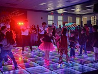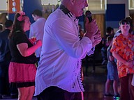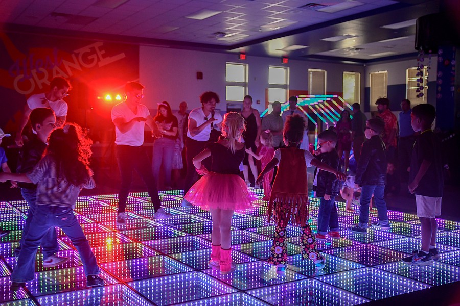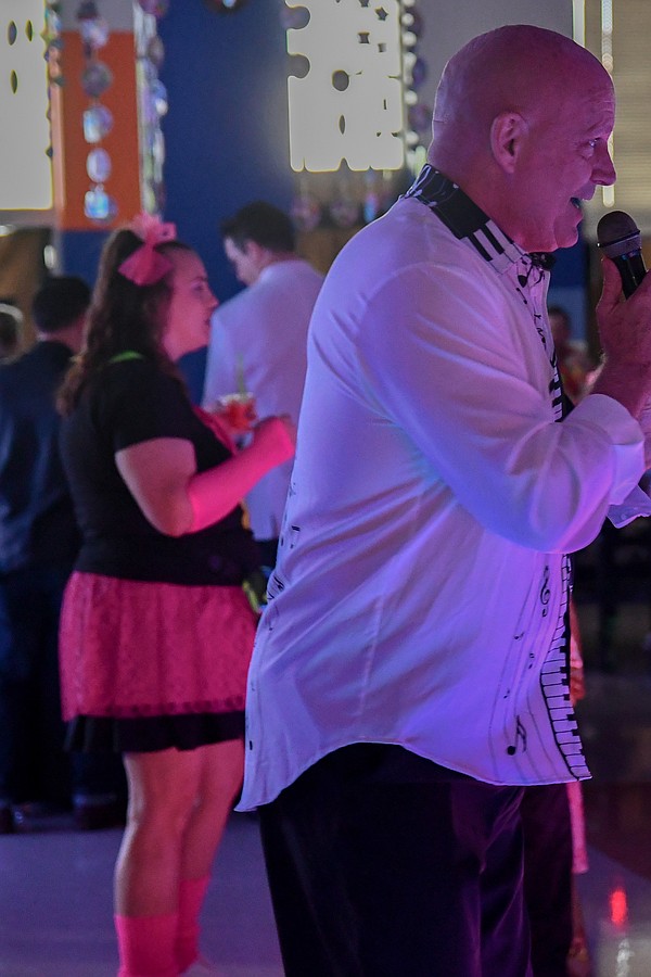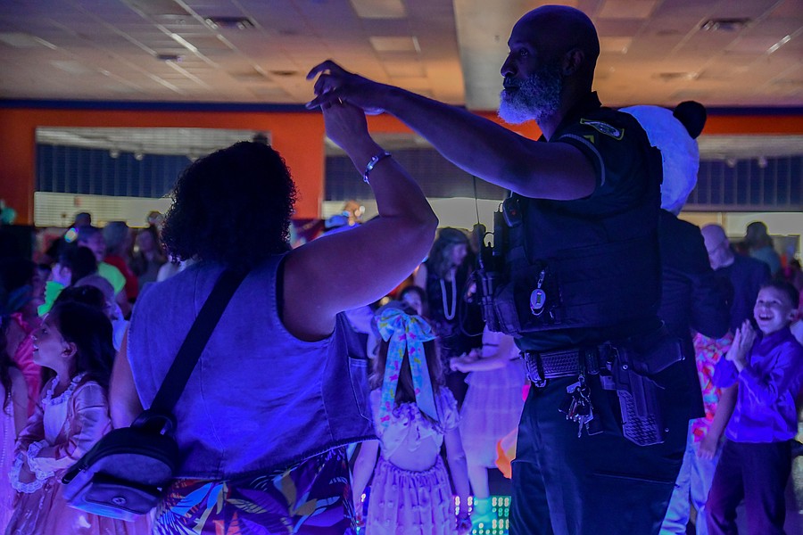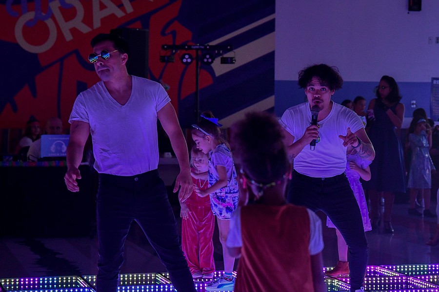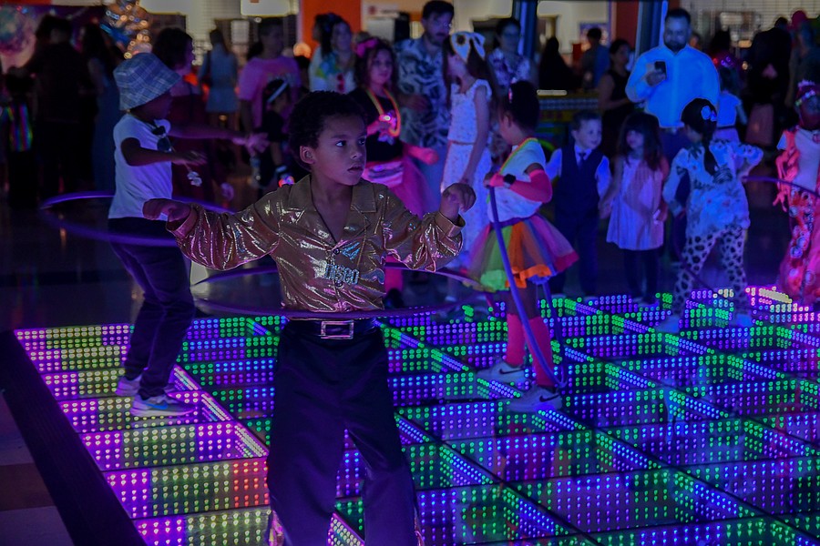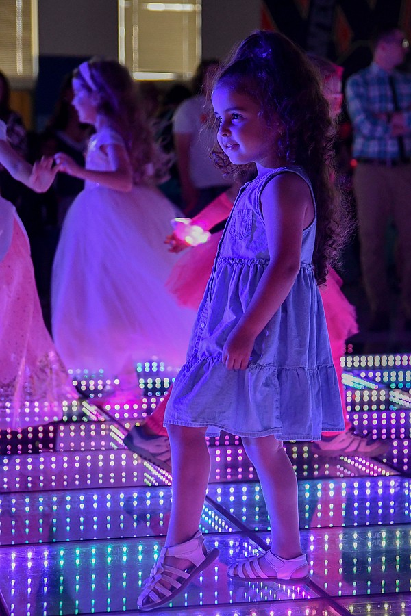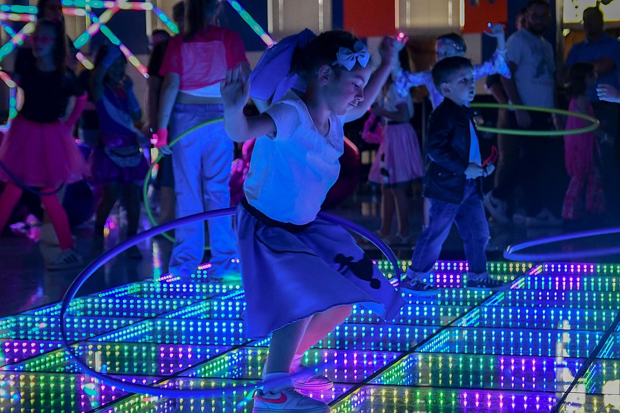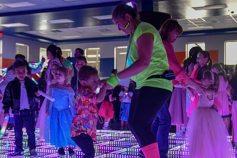 Parents and children dressed themselves in sequined tops, shiny dresses, neon-colored jackets and all-denim outfits. Families walked through a hallway of neon lights, which unlocked the dance floor where they danced the night away and enjoyed food including pizza, chips and Jeremiah’s Italian Ice.