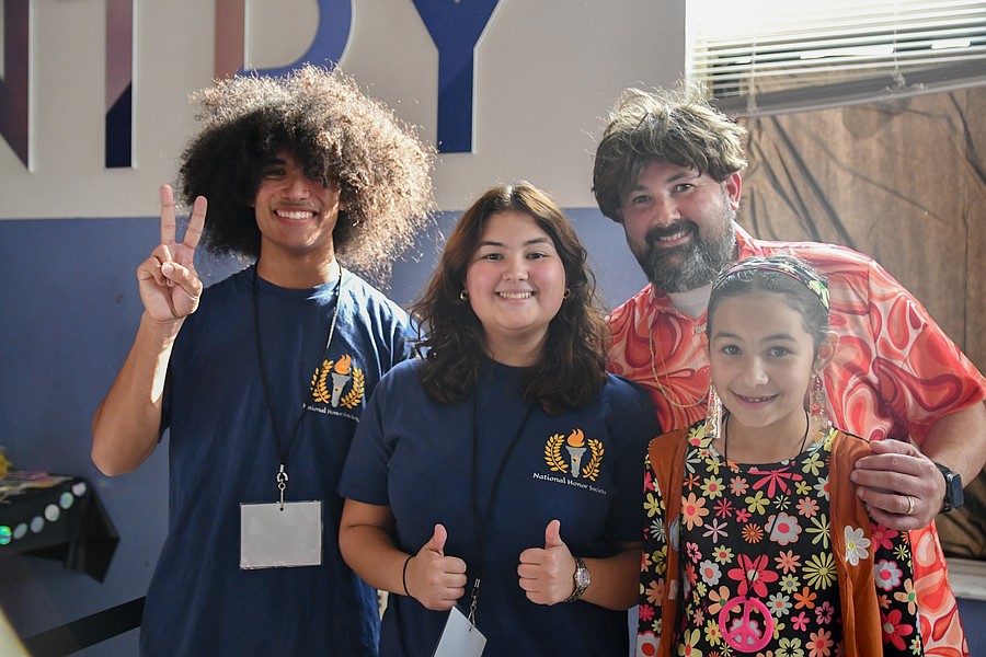 Jones Evans and Isabella Senges are students at West Orange High and volunteered to help at the dance. Senges' dad and sister Carlo and Isabella Senges also were happy to attend.