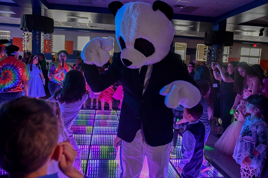The panda was a popular addition to the dance and kids were happy to see it dancing along with them.