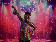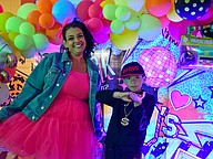 Jacob Gonzales danced with his mom, Tezia, in colorful decades-themed outfits.