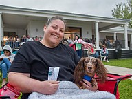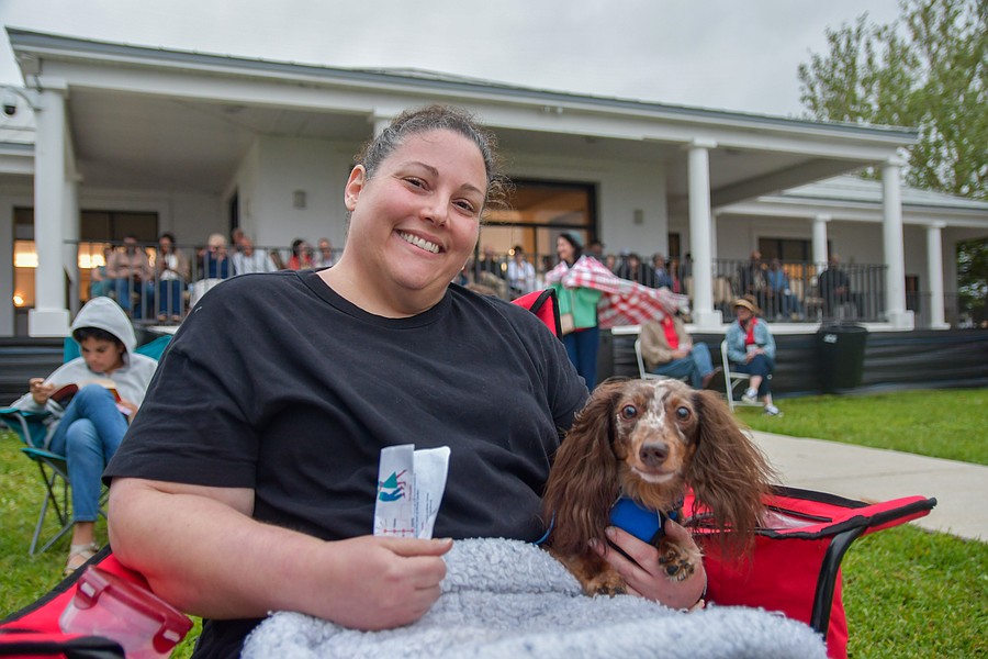 Sonjia McSween brought her dog Tesla, who is named after the scientist, to the outdoor concert.