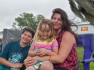 Evan Casey, Violet Casey and Samantha Gazzola stayed warm together despite the wind.