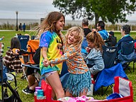 Mari Cole and Jeanna Sims said they love hearing the music at the annual Evening at the Pops. They live down the street and look forward to the event every year.
