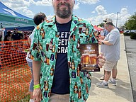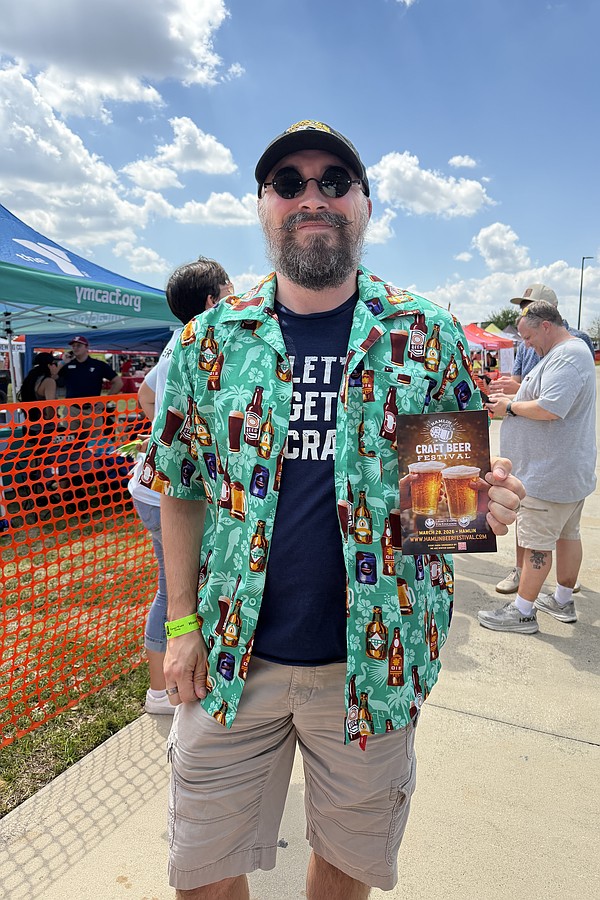 Patrick Hoehn wore the perfect attire, including a shirt and socks featuring beer mugs and a T-shirt that said "Let's get crafty."
