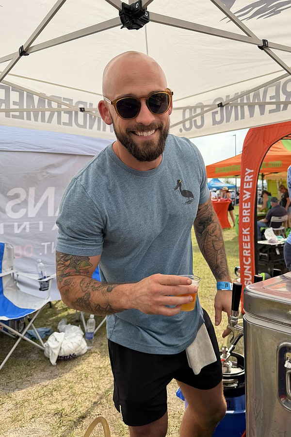AJ Gladding with Crooked Can Brewing Company served a sample of Florida Sunshine Mango Lager to John David.