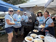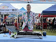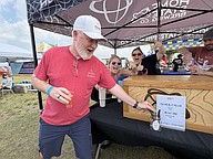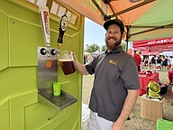Mike Jones with Orange County Pottys filled a pitcher to serve samples.