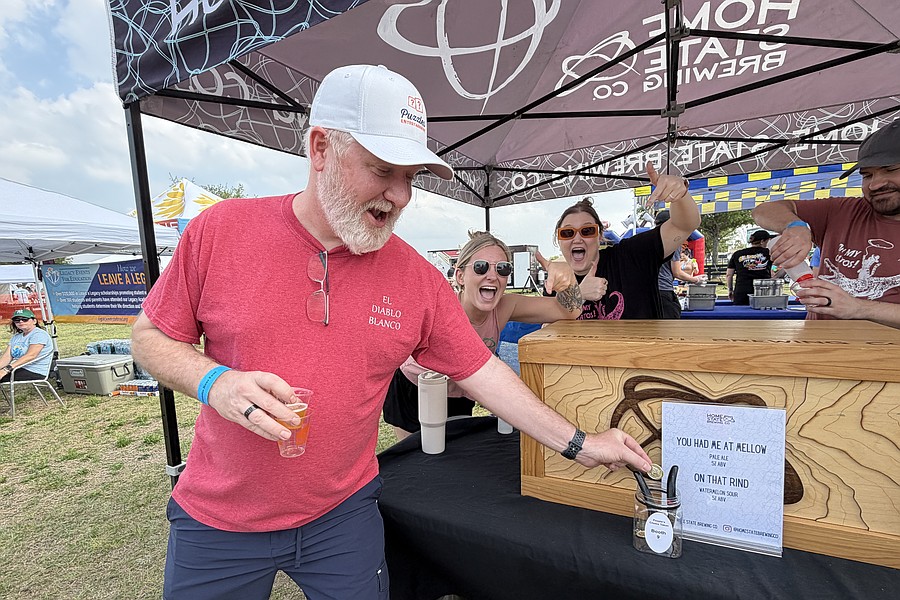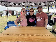 Shannon Ball, kyana Alcaraz and Justin Alcaraz with Home State Brewing Co. were all smiles serving beer to their community for a good cause.
