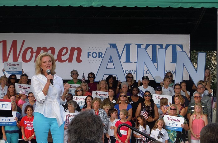 Anne Romney and a group of other women came to Central Park on Wednesday to rally for the Romney / Ryan ticket. I'm estimating a crowd of 1,800 to 2,000, but it was difficult to get a full idea from the ground. But there was a great crowd and many in supporting T-shirts and hats.